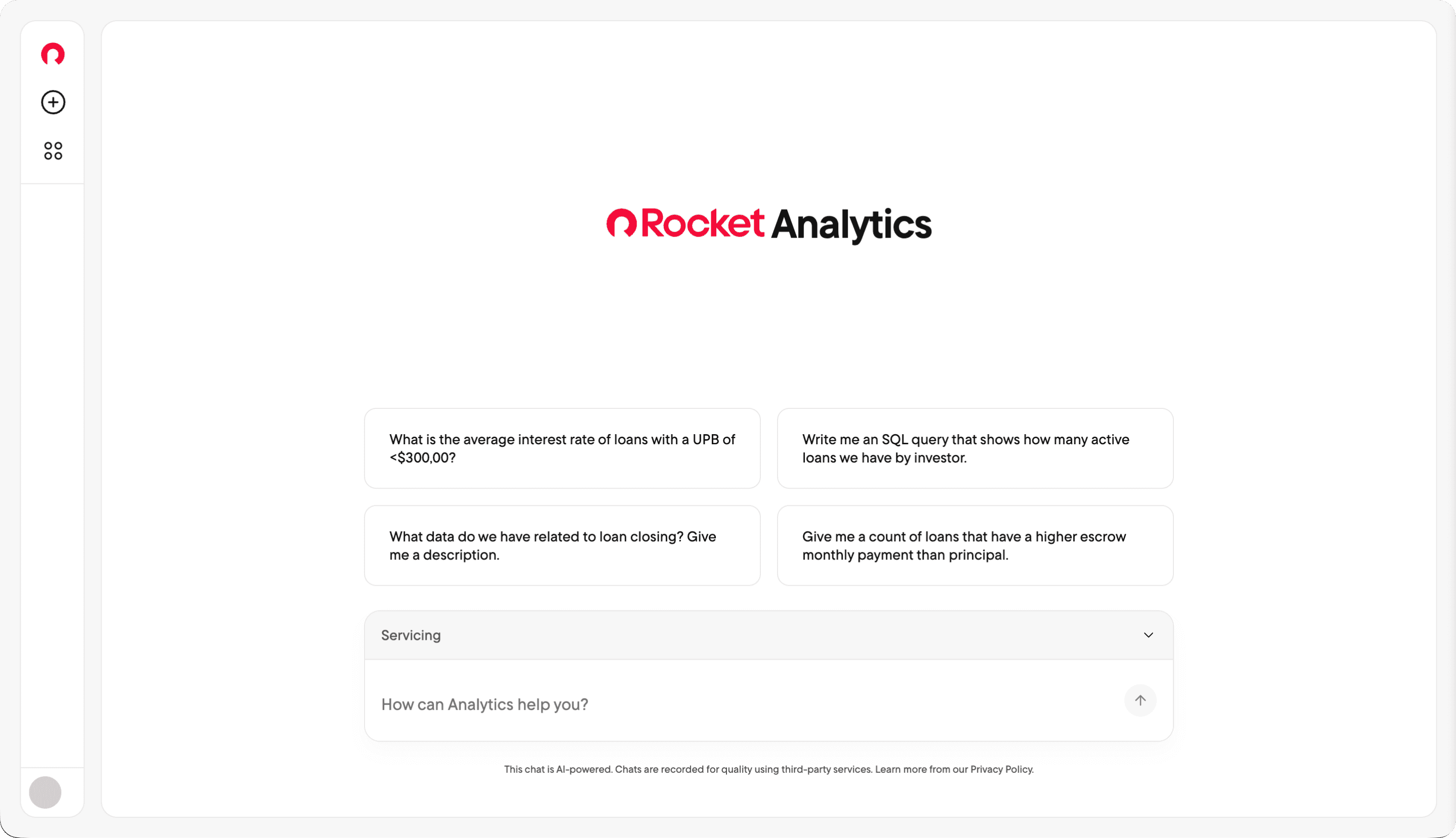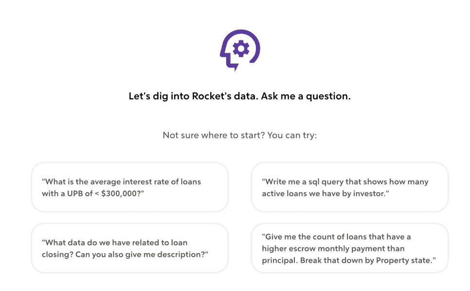 Imagine you're a banker at Rocket Mortgage. It's Monday morning and you need to pull last week's lead data before your team standup. Someone told you Rocket Analytics can do this โ it's supposed to work like ChatGPT, just ask it what you need.